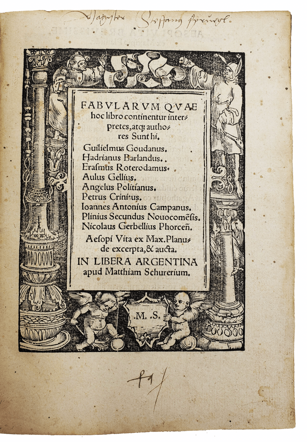 Princeton, Folger, and Illinois copies in the US. USTC 657144; VD16 A 460. Die Matrikel der Universität Wien, vol.II/3 (1962). W. Goth Reiger, ‘Erasmus and Aesop’, Erasmus Studies 39 (2019), 51-74