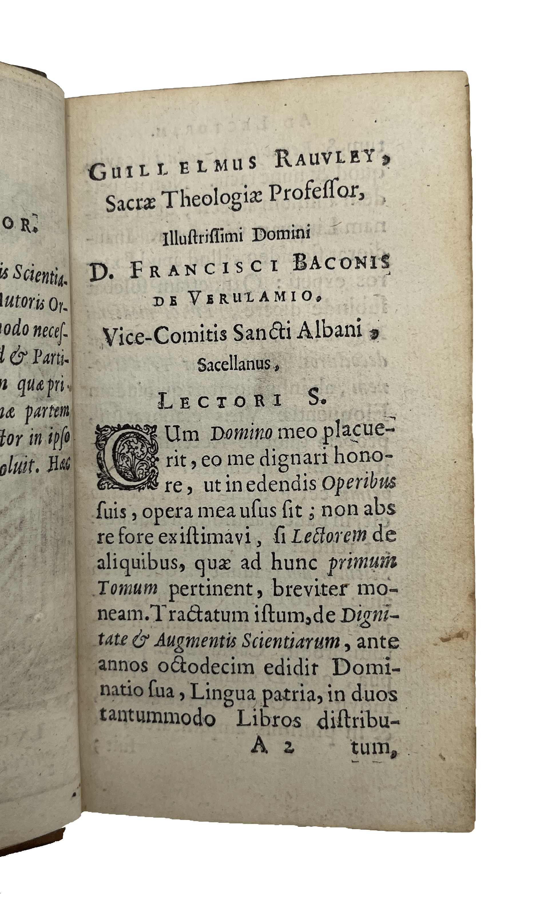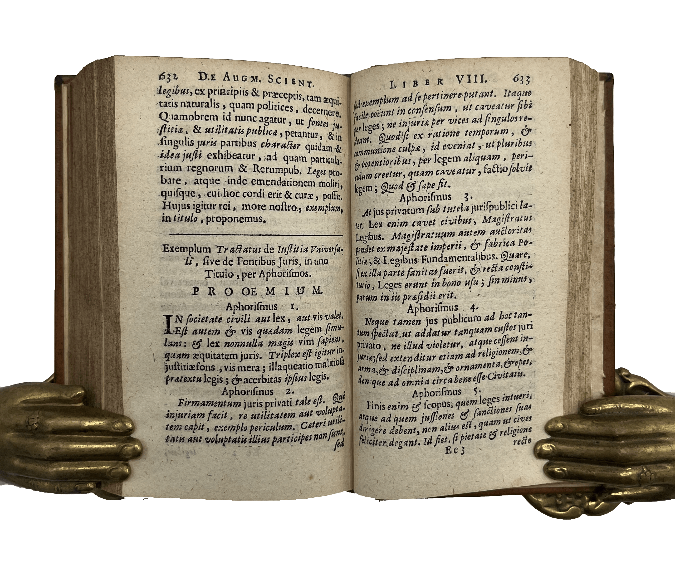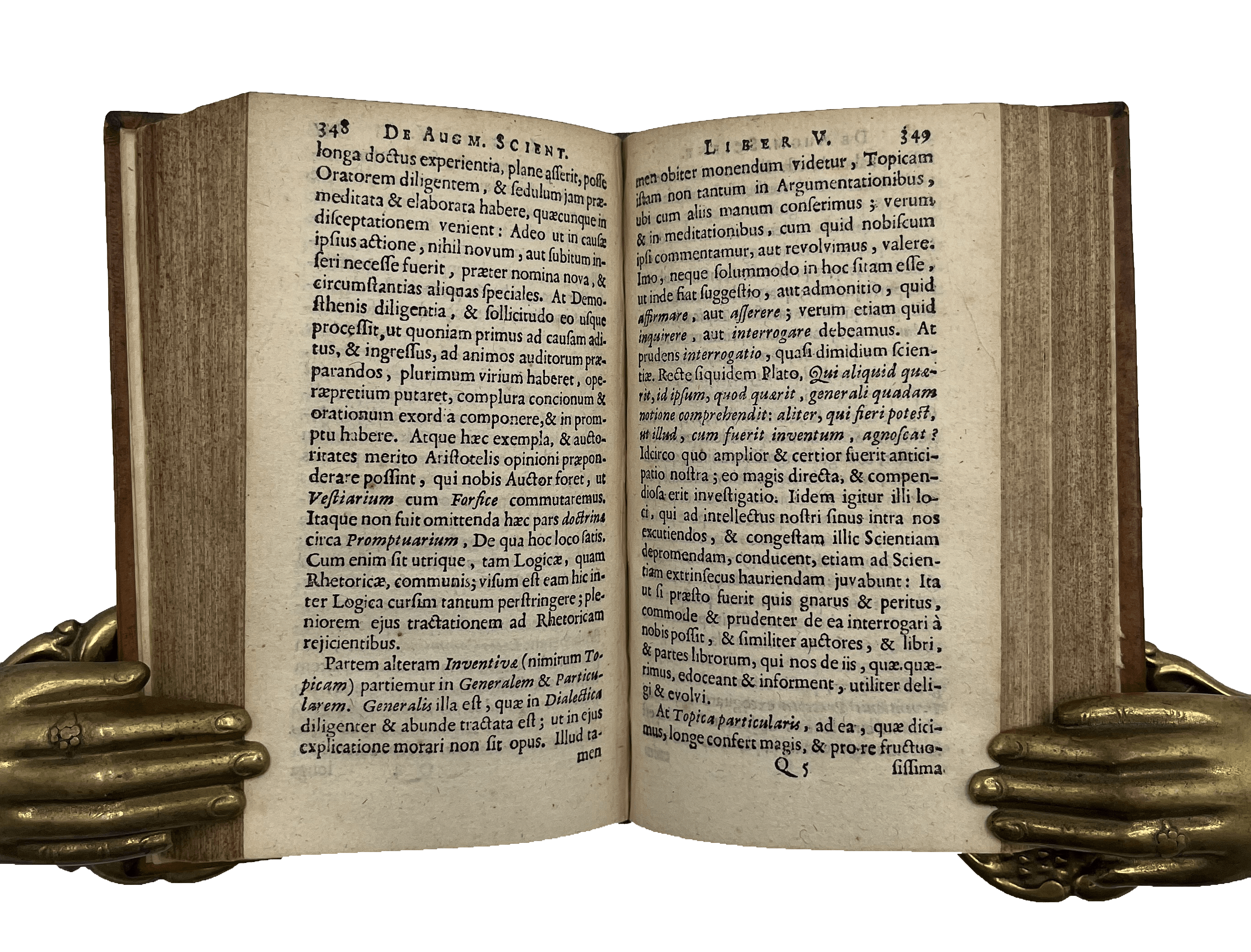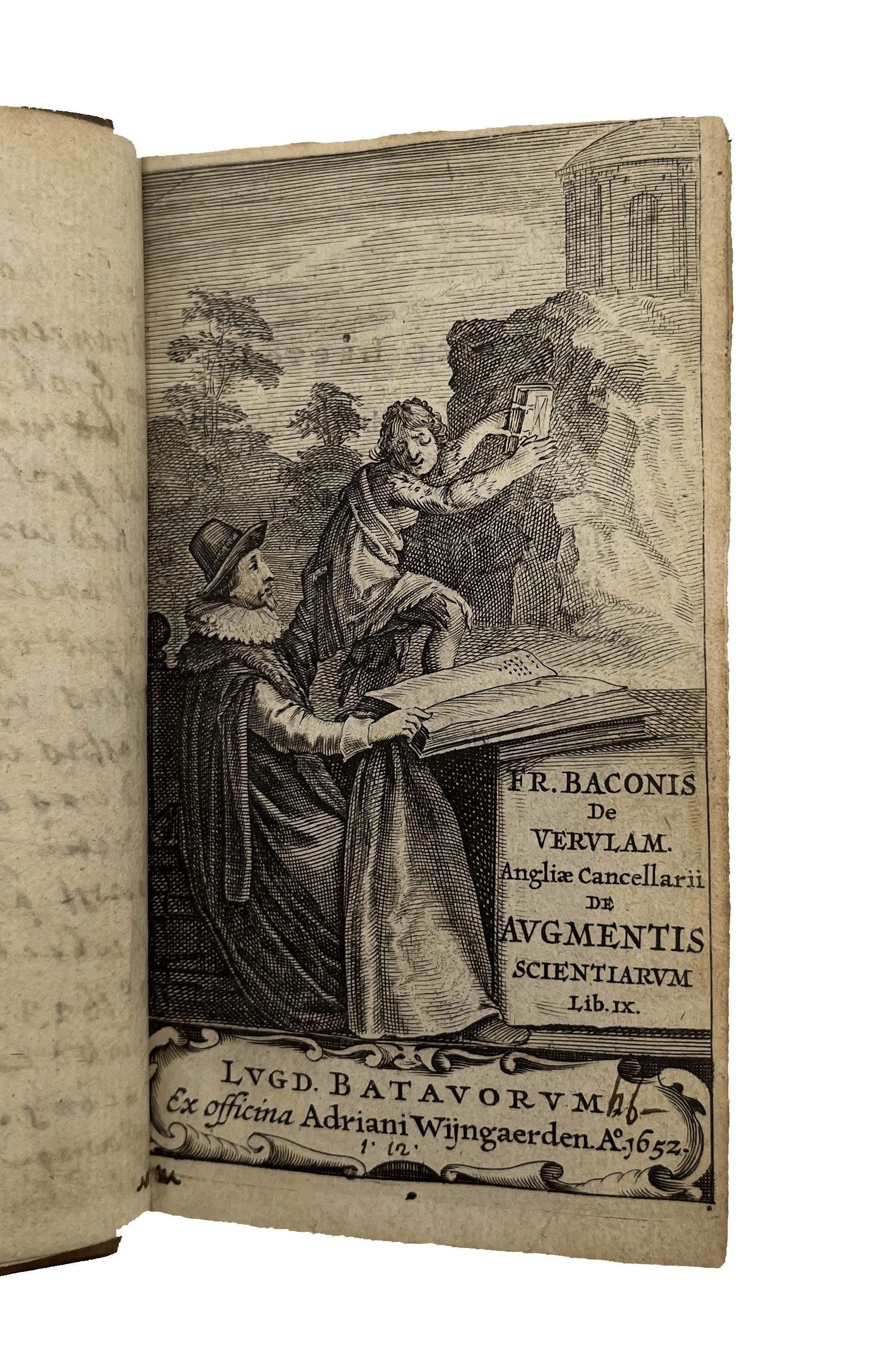 Francis Bacon’s ‘Advancement of Learning’, originally issued in 1605, is the first original book of philosophy in English. First published in 1623, ‘De Augmentis’ was Part I of Bacon’s empiricist project, the ‘Great Instauration’ of knowledge and learning, never completed; Part II was ‘Novum Organum’ (1620). Here, Bacon presents ‘a general description of the sciences including their divisions as they presented themselves in his time […] [as well as] a systematic survey of the extant realms of knowledge, combined with meticulous descriptions of deficiencies, leading to his new classification of knowledge’ (Stan. Enc. Phil.).