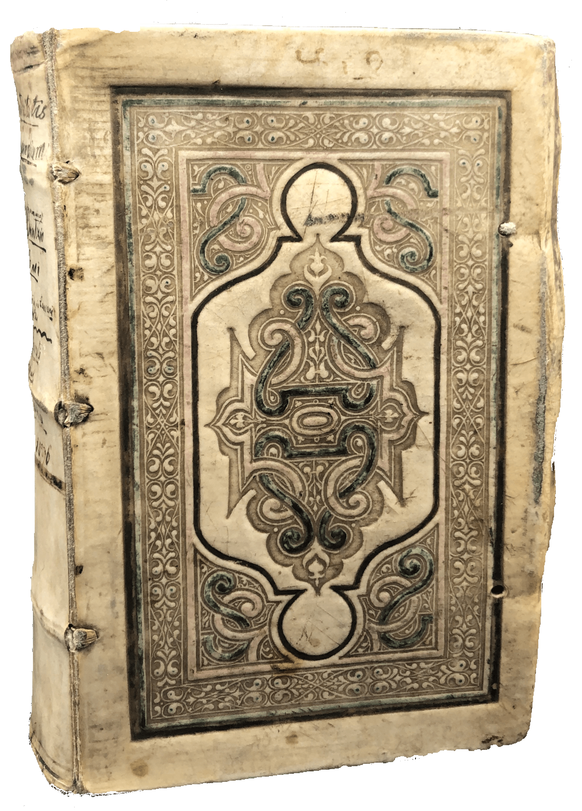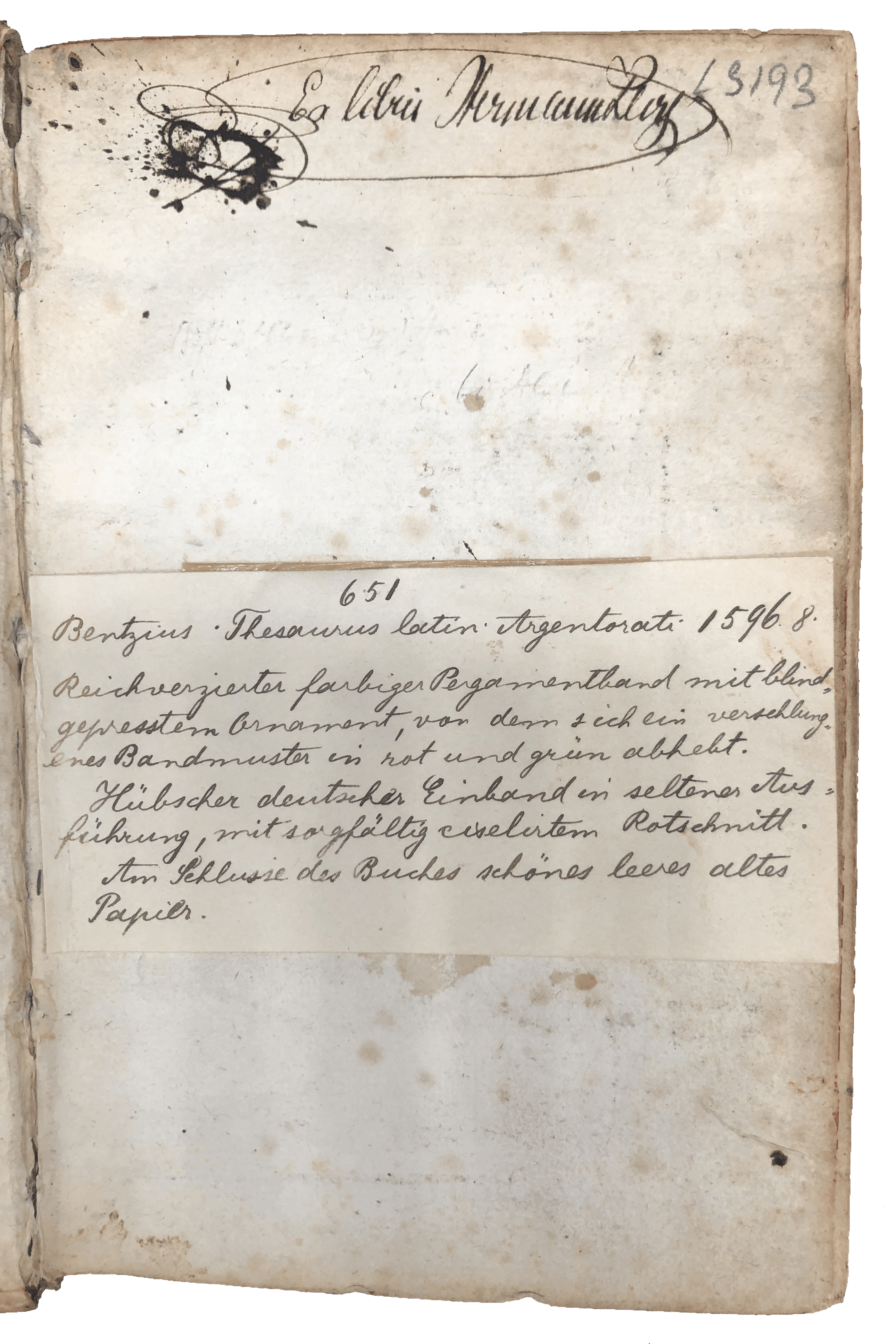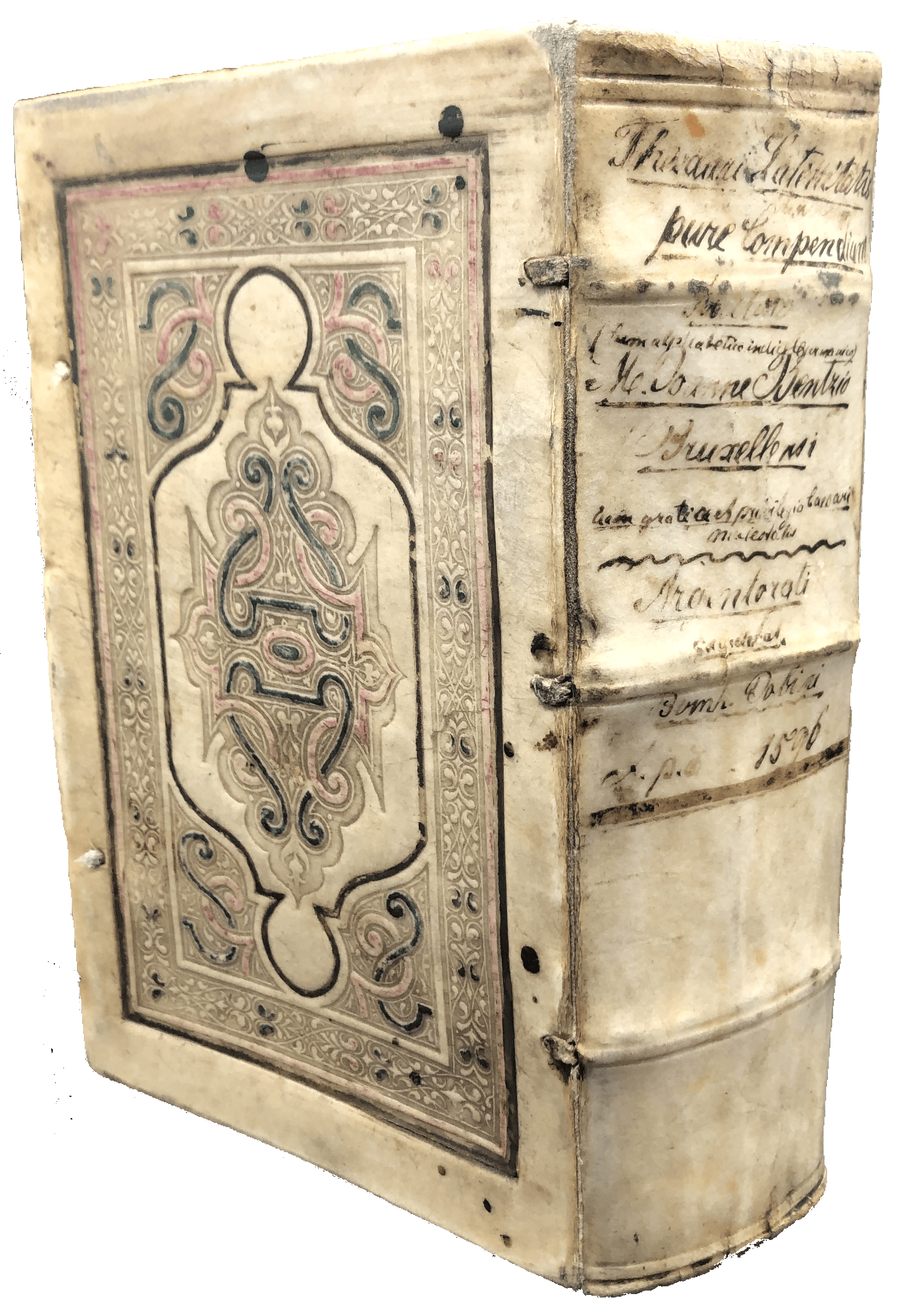An elaborately bound copy of the second, substantially enlarged edition of this scarce Latin-German lexicon. The lovely contemporary binding of German influence, as shown by the traces of green, black and red paint on the vellum, suggests this was a present. Johann Bentz (fl. late C16-early C17) from Brussels was professor at Strasbourg, and the author of Latin textbooks on rhetoric and grammar. This is the second, much enlarged edition (‘alterum’), published by the same printer in the same year as the first (‘primum’). Like the first, it is divided into subjects (or ‘loci’), e.g., God, the soul, justice, temperance, history, the state, geometry, medicine, astronomy, the graphic crafts and the ‘evil’ arts. Under ‘De graphicis artificiis’ are ‘typographia’, ‘typographus’, ‘excudere’, ‘operae typographicae’, ‘typus’, ‘loculi’ or ‘capsulae’ (the printers’ type drawers), ‘praelum’, ‘sphaera’, ‘atramentum typographicum’ (blank ink), ‘minium’ (red ink), ‘fusor typorum’ (the type founder), ‘bibliopegus’ (bookbinder), and ‘compingere’ (to bind). In most sections, Latin words are listed alphabetically, with a German translation. This second edition was reset in double column, and substantially revised with additional Latin and German synonyms, and long lists of related Latin phrases (either adjectives or verbs), so that the young owner could learn how to write in Latin on specific subjects (traditional and contemporary) using an idiomatic language. A detailed subject and a diagrammatic index were added as preliminaries, and the work concluded with an 83-page dictionary of all the German words mentioned in the work. A scarce work of linguistic and typographical interest.