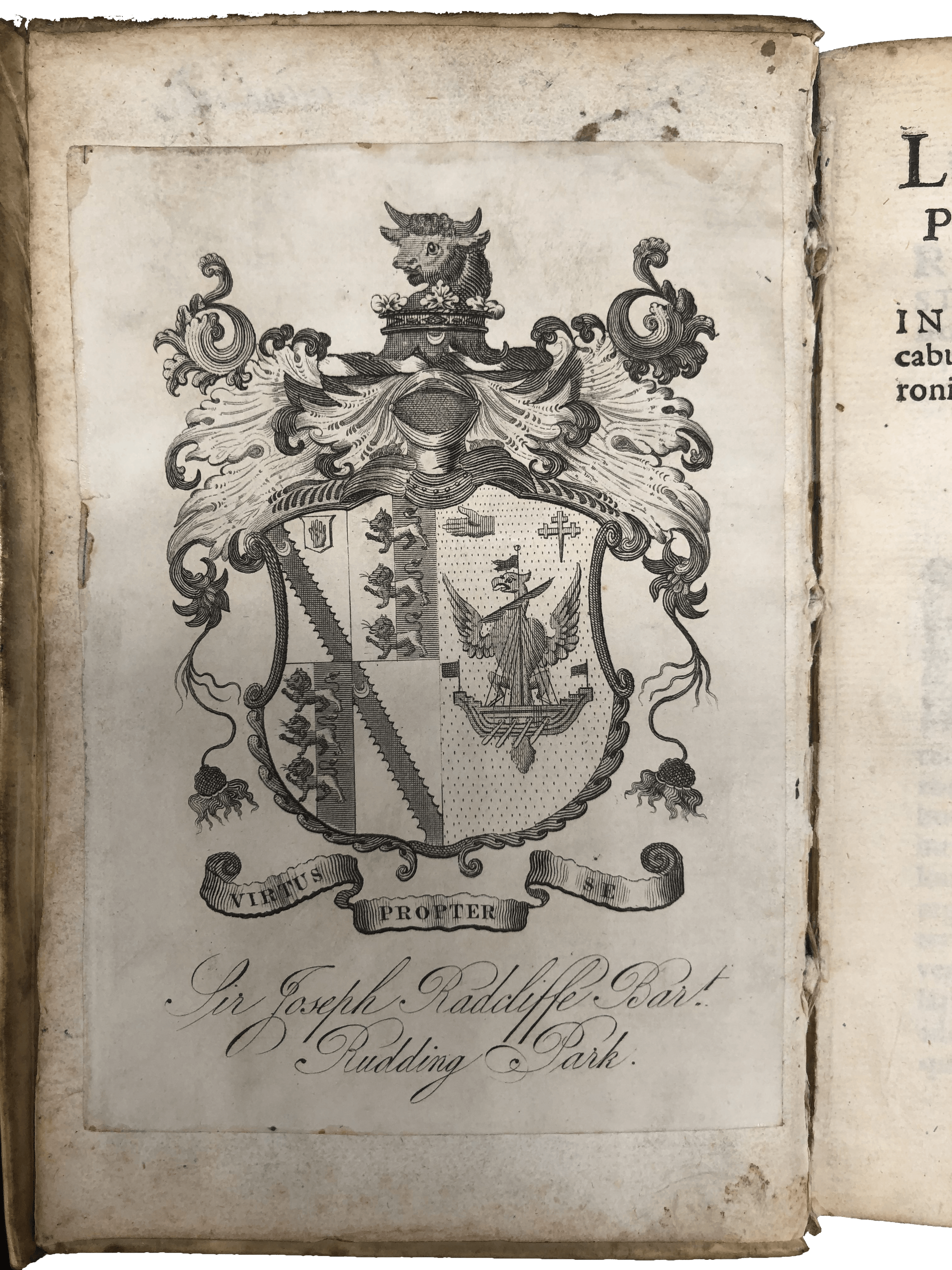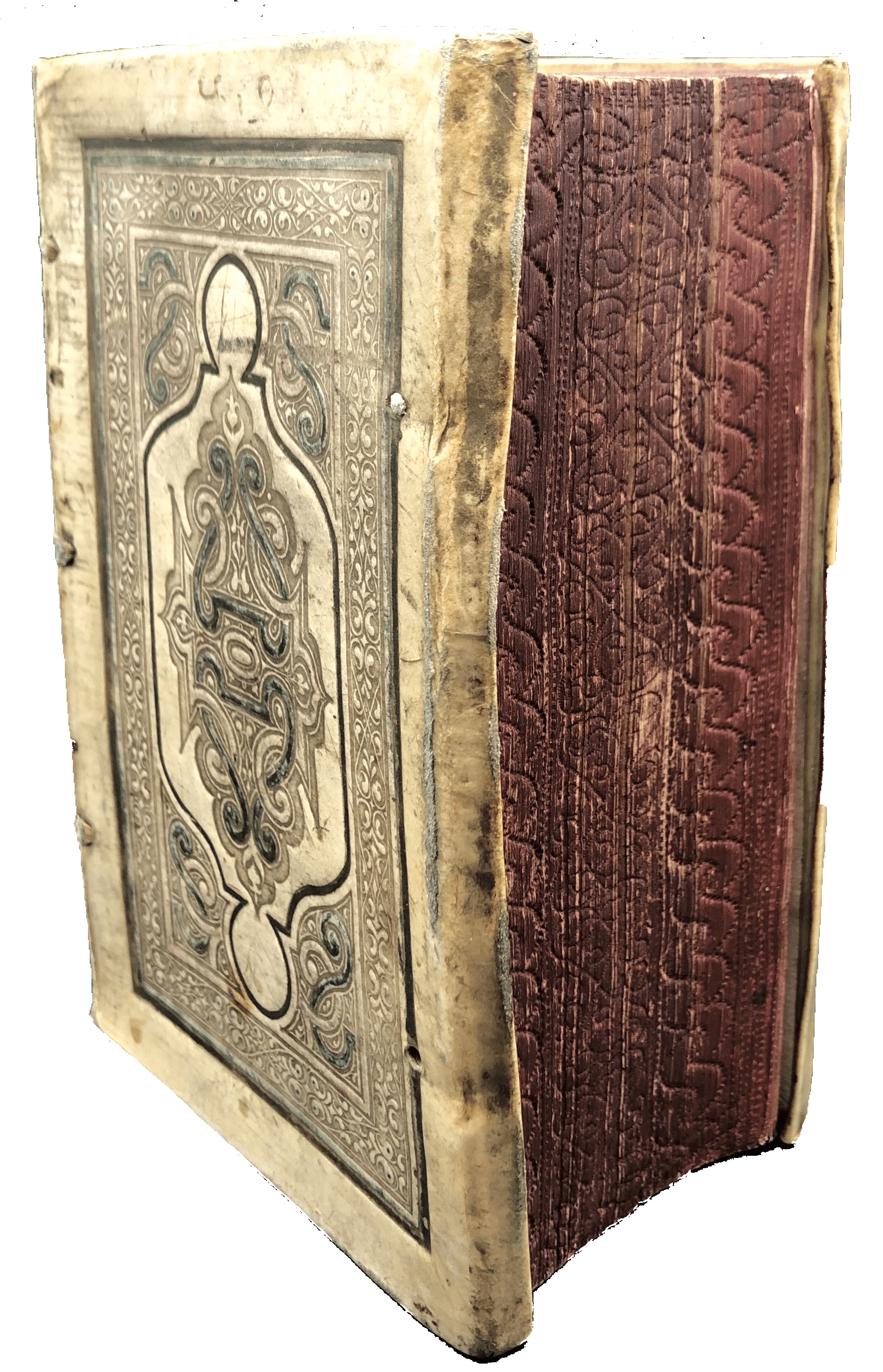 8vo. pp. (xvi) 666 [i.e., 696] (lxxxiv) + 96 blank ll. Roman letter, with Gothic, occasional Italic, double column. Woodcut printer’s device to t-p, decorated initials and ornaments. Lightly browned, a few ll. and edges a bit dusty, two tiny worm holes to first two gatherings occasionally touching a letter, small ink (?) smudge to lower outer blank corner of 2R5-6. A good copy in elegant contemporary vellum, yapp edges, traces of ties and of green, black and red paint to boards, double blind ruled to a panel design, outer border with blind-stamped tendrils, centre panel with blind-stamped cornerpieces and lozenge-shaped centrepiece, all with gouges and interlacing ribbons, raised bands, title inked to spine, all edges red and gauffered. C18 sketched map of a region of northern Germany inked to front pastedown, ex-libris of Hermann Levy to ffep, another with longer note dated 1852 to first blank leaf at rear, C19 armorial bookplate of Sir Joseph Radcliffe [2nd] Bart. of Rudding Park to ffep, C18 ex-libris of Johannes Rumpus anno 16(00?) to t-p.