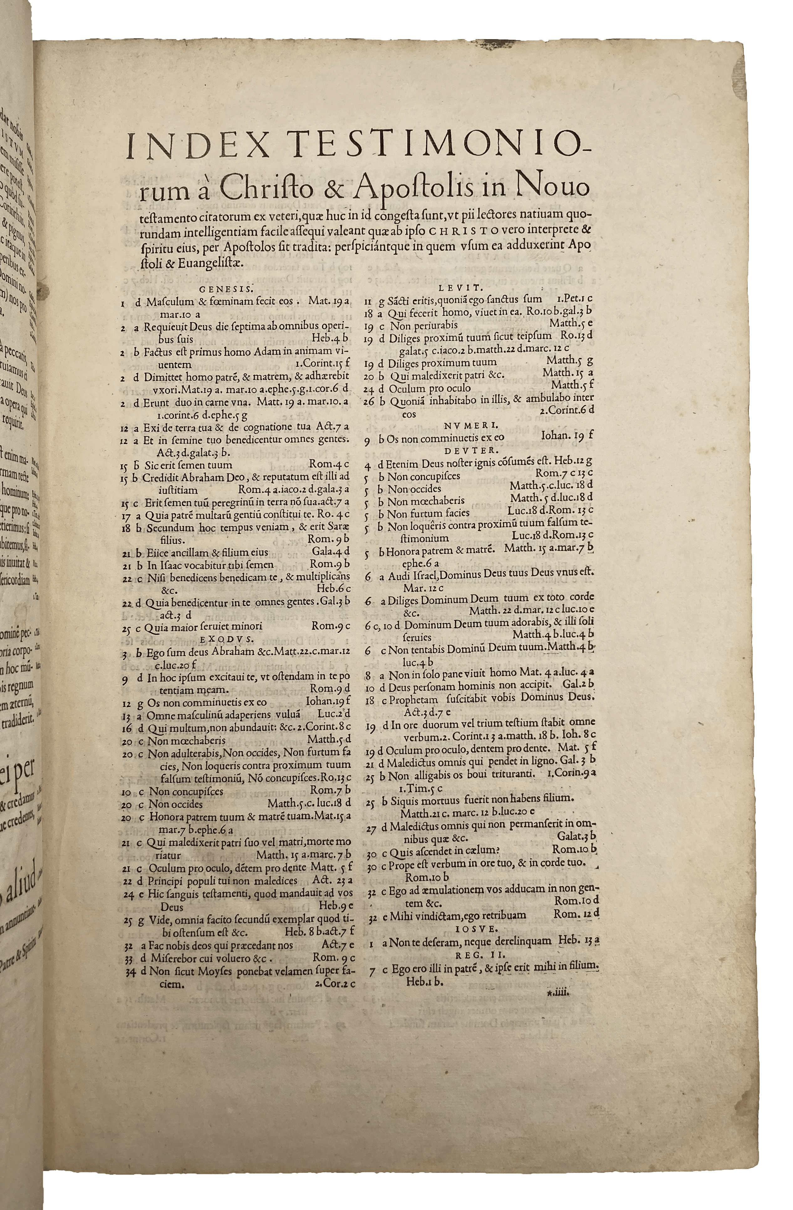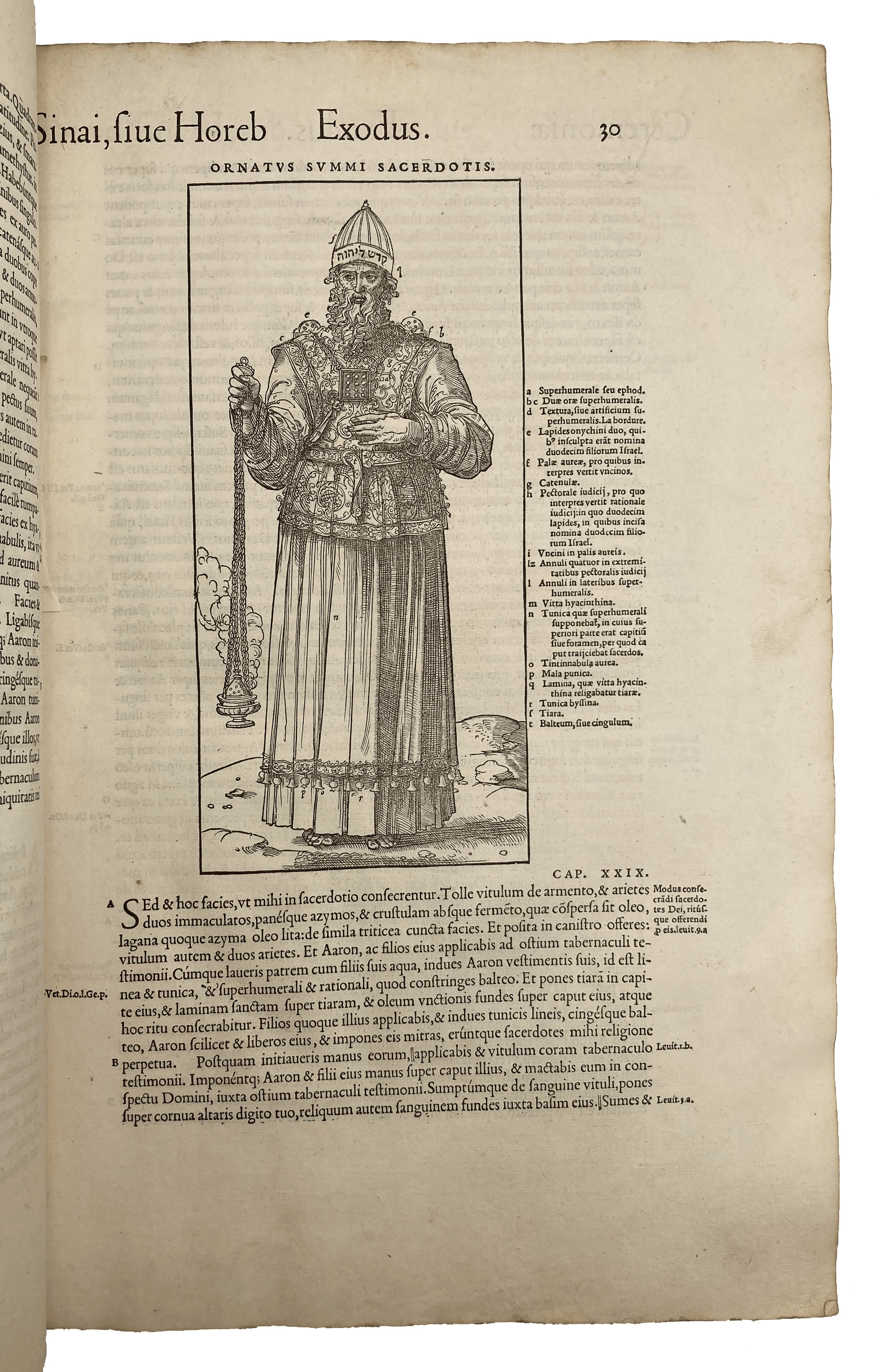 The Old Testament is illustrated with woodcuts of Noah’s Ark and various Jewish rites, including a full-page woodcut of the Tabernacle, in which the artist’s excessively “pyramidal” Tabernacle is excused on account of his need to achieve the correct optical effect. At the rear is an index of names appearing in the Biblical text with their etymologies provided in Latin, Greek, Hebrew and Chaldean.
