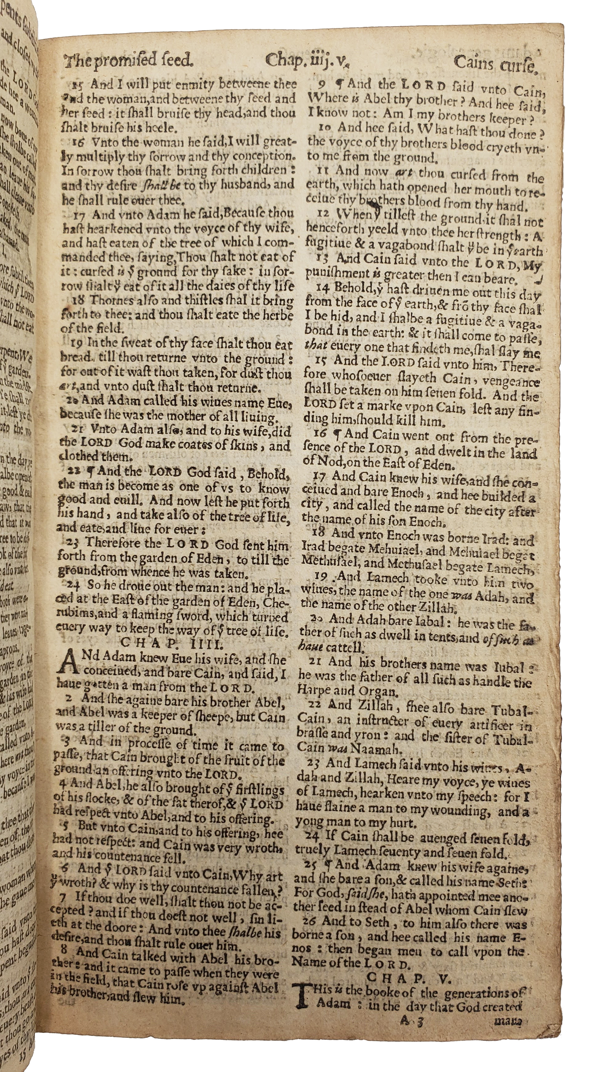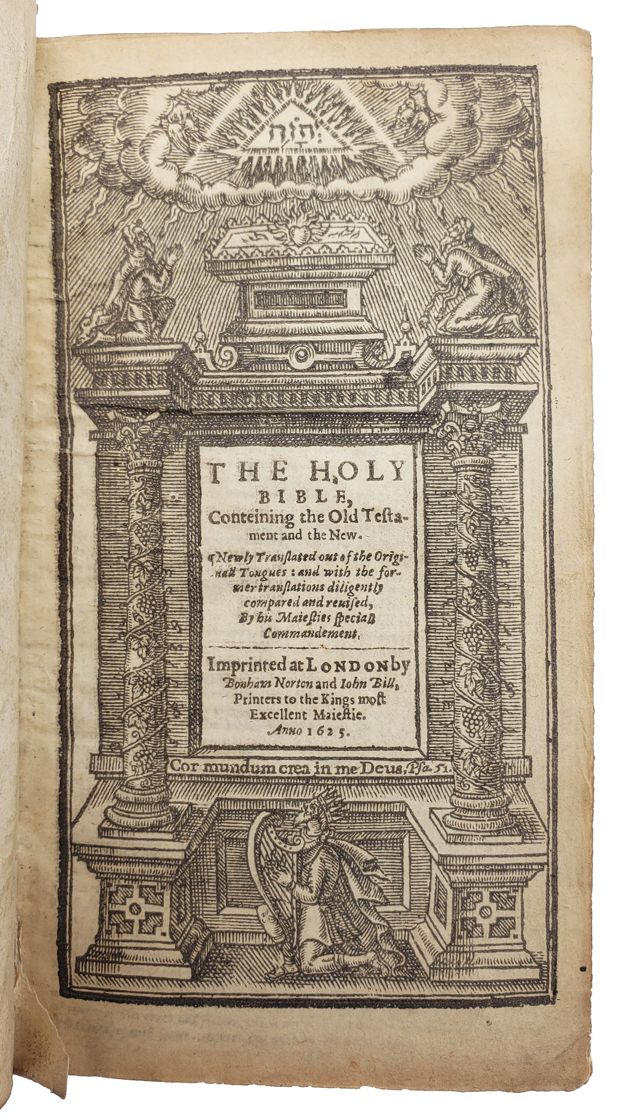 12mo. Two parts in one vol. 339 unnumbered ll; pp. (x) 99 (ix). Roman letter. Without the Apocrypha at the end of the Old Testament, as usual. T-p and divisional title within woodcut architectural border depicting David with harp, t-p of Psalms within typographical border. Woodcut initials, typographical headpiece, woodcut tailpiece. Recent autograph and cat. no. to ffep. Very good copies in contemp. figurative embroidered silk and gold and silver thread over canvas. Joints at head and tail of spine worn to backing, some repair. Cover worn but panels substantially intact, 2 female figures within architectural borders in green, red and blue, gold and silver thread, spine with flowers, edges gilt, rich contemp. gauffering. Rubbed.