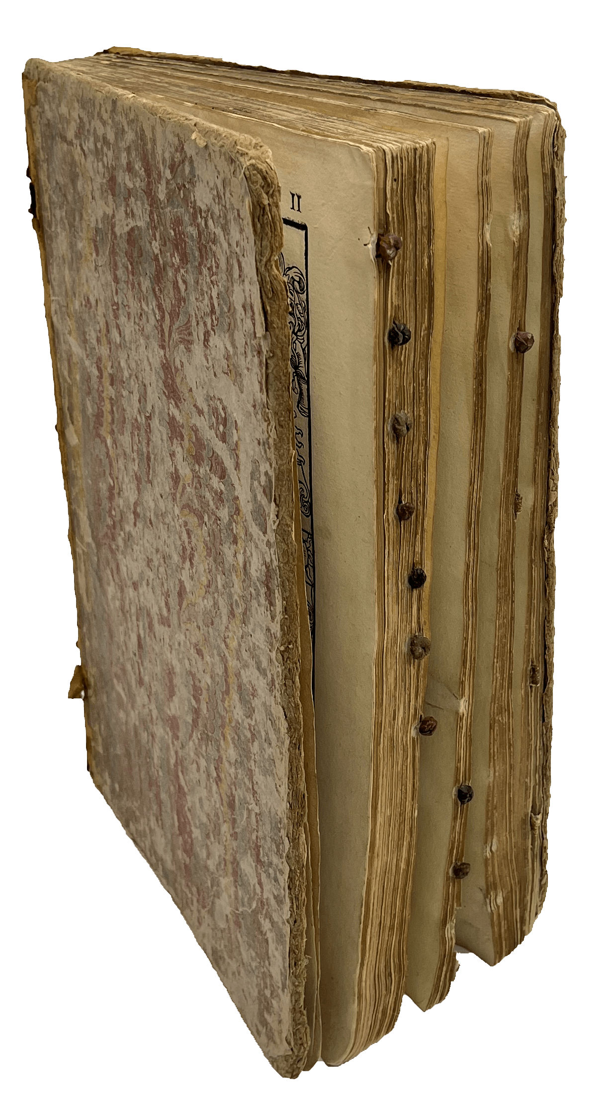 Folio. ff. 132 (lii [index]). Gothic letter, double column. T-p within elegant woodcut border attr. Hans Springinklee, formerly Dürer (BM), depicting scenes from Revelation, Christ’s baptism flanked by angels with instruments of the Passion, and emblematical scenes of death. 2 full-page woodcut arms of Maximilian I as King of the Romans and Florian Waldauf. Divisional t-p to index. Woodcut initials, one historiated. A few small light stains to blank gutter and upper outer edge of first quire, intermittent waterstain to upper blank edge and outer corner, just touching edge of text in quire g, index with light waterstain to blank lower margin and fore edge, darker in index quire f. A good, clean copy in C18 quarter calf over marbled boards, rubbed and faded, losses from corners, joints and head and foot of spine. 10 contemp. coloured knotted leather placemarkers affixed to edges, 2 missing with small loss to blank margin of C6, 3 smaller leather tabs, occasional slight losses from adjoining leaves, marginal tear to x6 partly repaired (no loss), small marginal tear to blank margin of g4 (index). c.1900 bookplate to front pastedown.