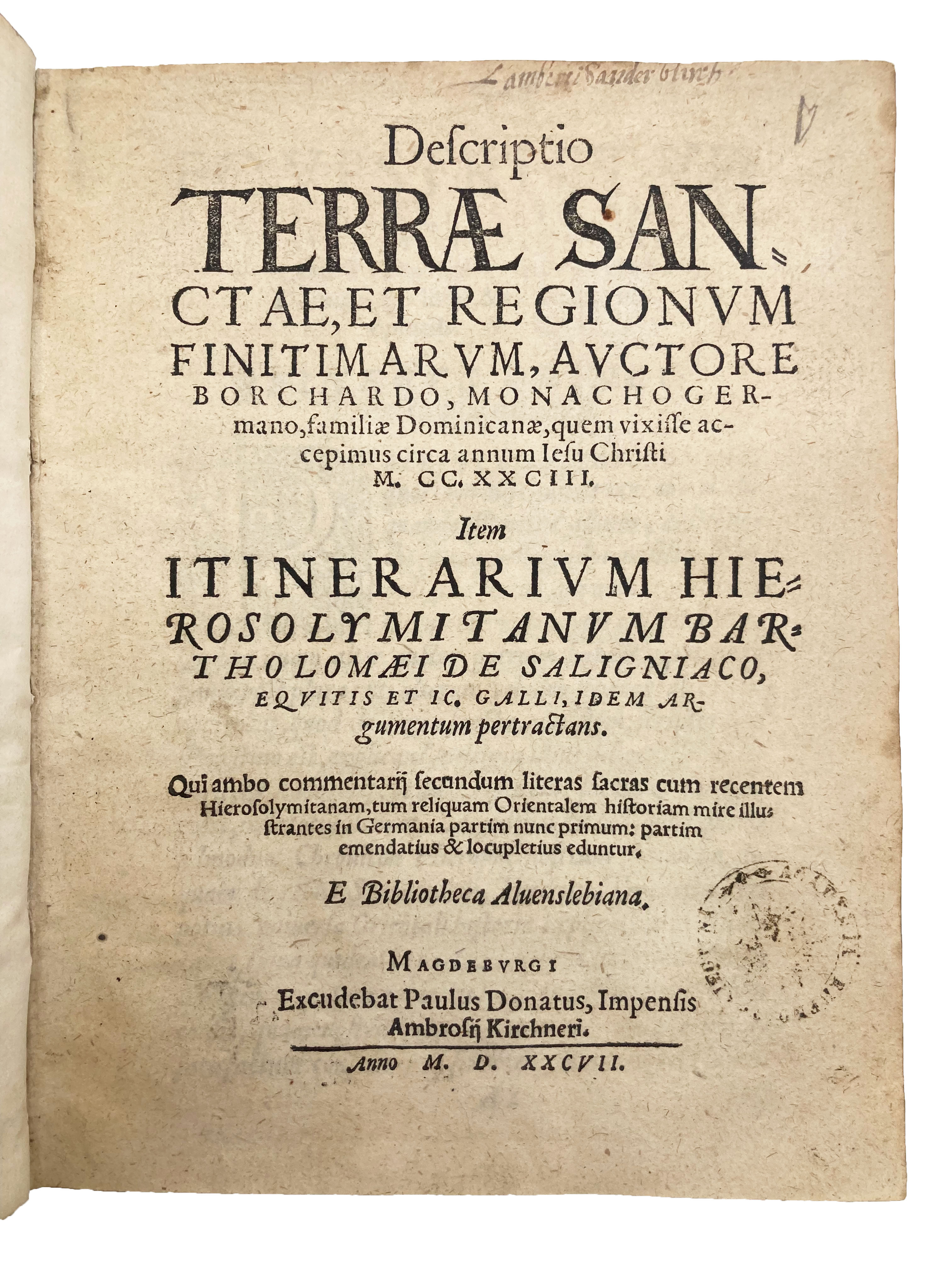 BURCHARD OF MOUNT SION; SALIGNAC, Barthélemy de. Descriptio Terrae Sanctae et Regionum Finitimarum. [...] Itinerarium Hierosolymitanum.
