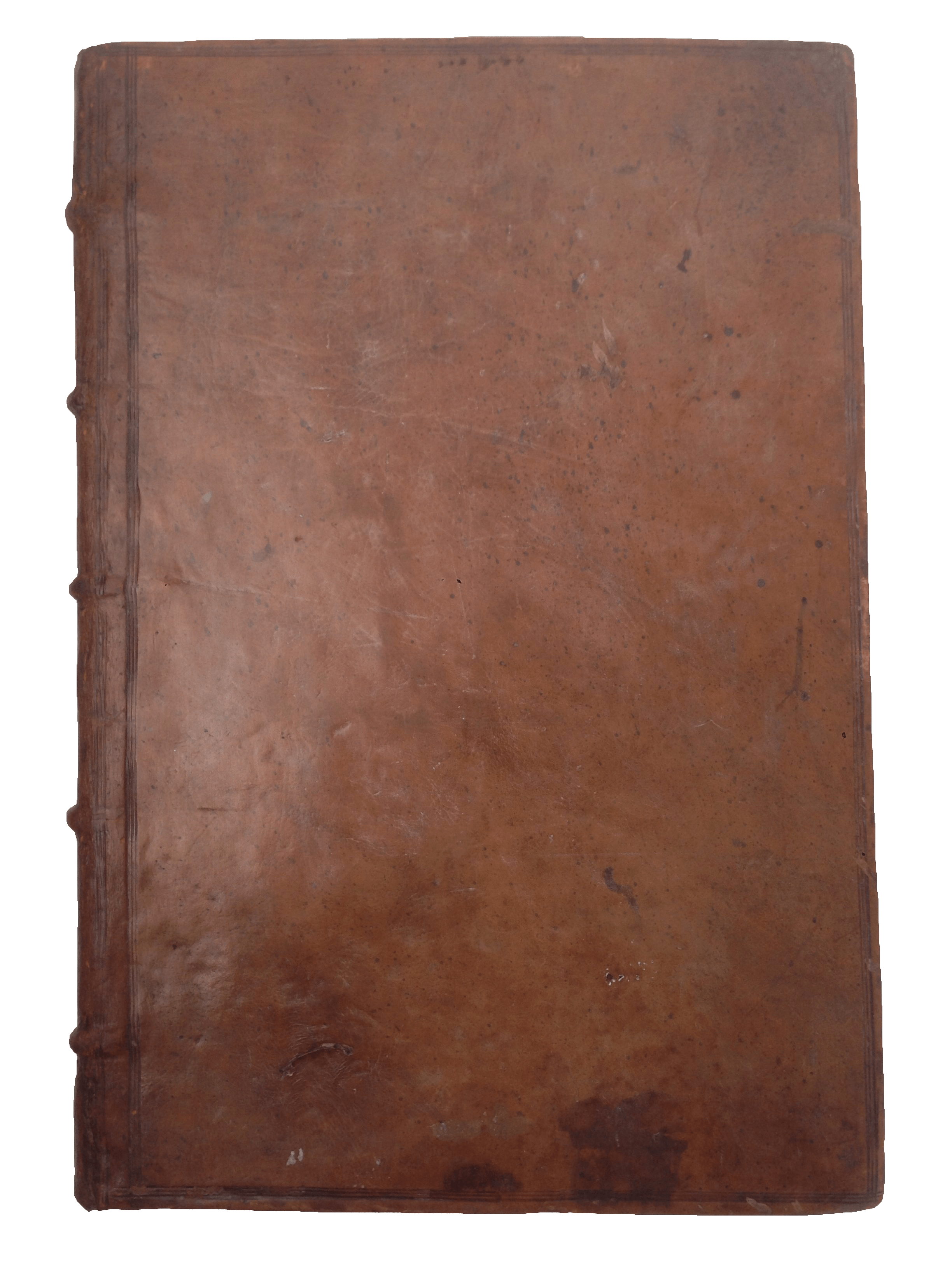 Folio. 3 parts in one. 1) ff. [iv], 46; 2) ff [ii], 28; 3) pp. 19, [iii], one large folding table. Title of first and second part within fine engraved architectural border, putti above holding a geometric figure and instruments, satyrs to the sides, Mercury and Minerva below, third part with letterpress title, sixty one full page and three half page engravings, five full page and twenty eight small woodcut diagrams, large woodcut folding plate, large floriated, grotesque and historiated woodcut initials, large grotesque head and tail pieces, typographical ornaments, engraved armorial bookplate of ‘Hopetoun’ on pastedown. Light age yellowing, slight soiling to printed section of first title, very occasional marginal mark or spot. A very good copy, crisp and clean, with very good impressions of the engravings, in handsome contemporary English calf, covers bordered with a triple blind rule, blind ruled raised bands, a.e.r. small expert repair at head and tail of spine.