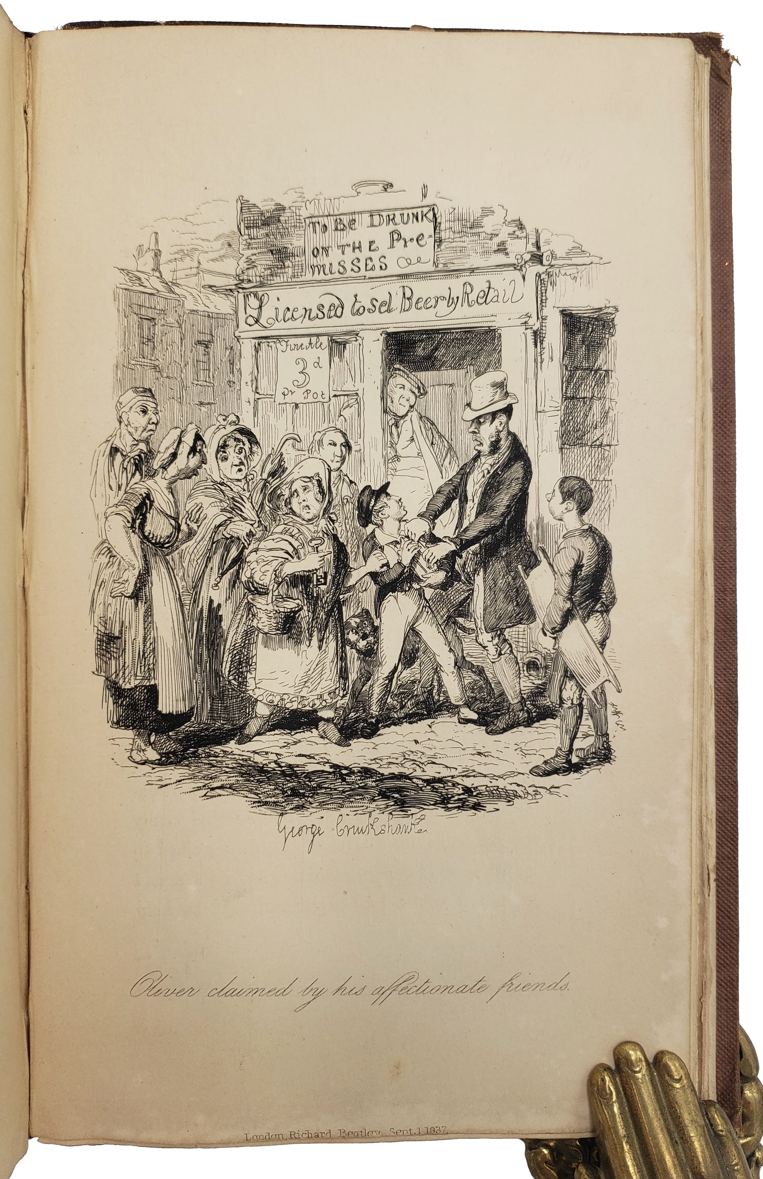 FIRST EDITION, Third Issue, the “Charles Dickens Issue.” With the 24 etchings on steel by George Cruikshank. “Copies of the Boz-issue (i.e. First Edition, 1st and 2nd issues) are now much more readily available than either the Charles Dickens-issue or the Second Edition (Tillotson p. xlviii).