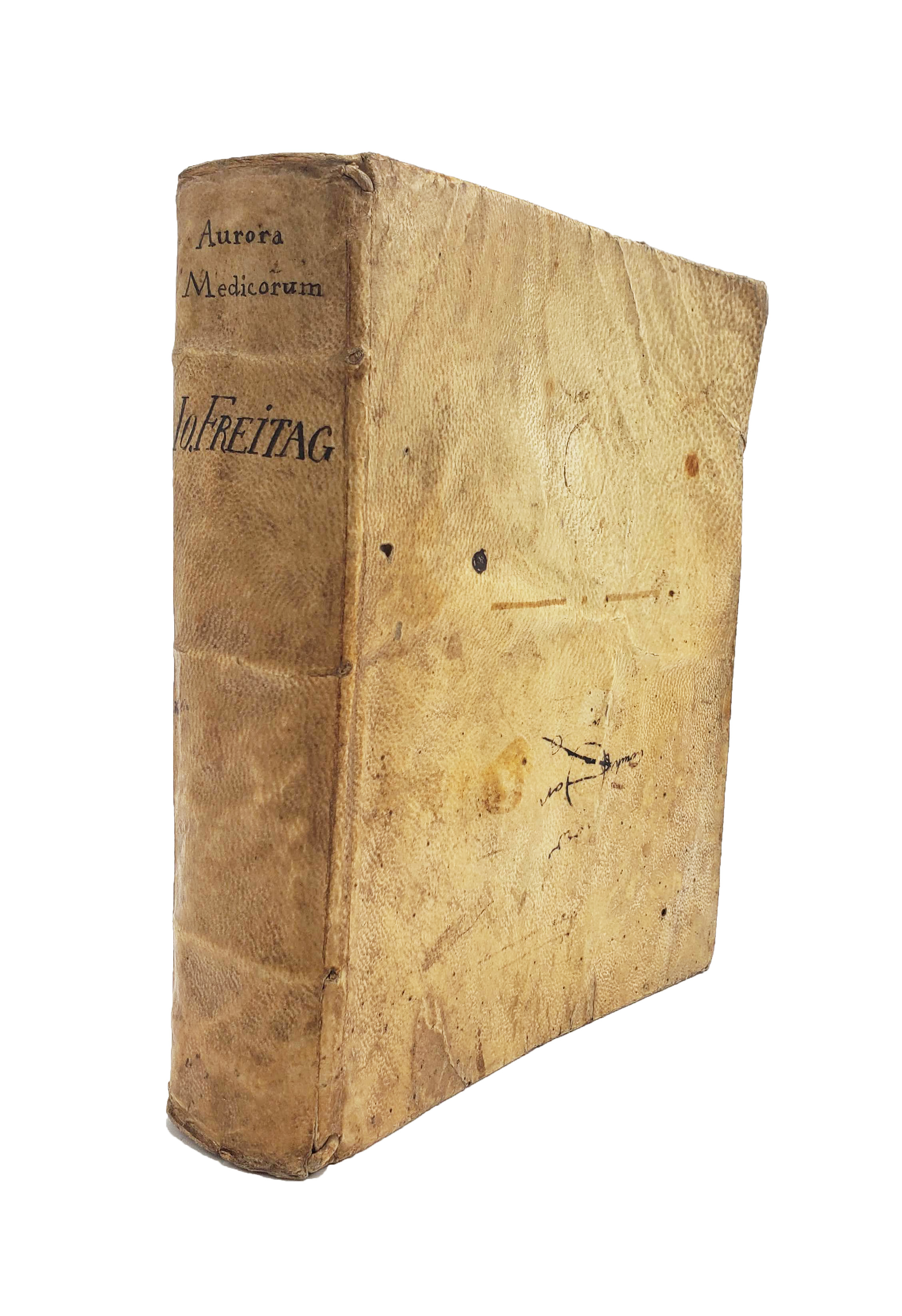 Rare first and only edition of this guide to purgatives derived from chemical medicine and alchemy. The author Freitag (1581-1641) was professor of medicine at Osnabrück, where he was also physician to the bishop, to whom this work is dedicated. He combines chemical medicine with humoral theories based on Greek Hippocratic and Galenic medicine, producing what is both a serious theoretical work on humoral purgation and a practical guide with recipes and instructions. Freitag uses Paracelsian recipes for several purgatives, which is interesting given the vocal opposition to Paracelsianism for which he became known, especially in his battles with his ‘nemesis’ Daniel Sennert (1572-1637).
