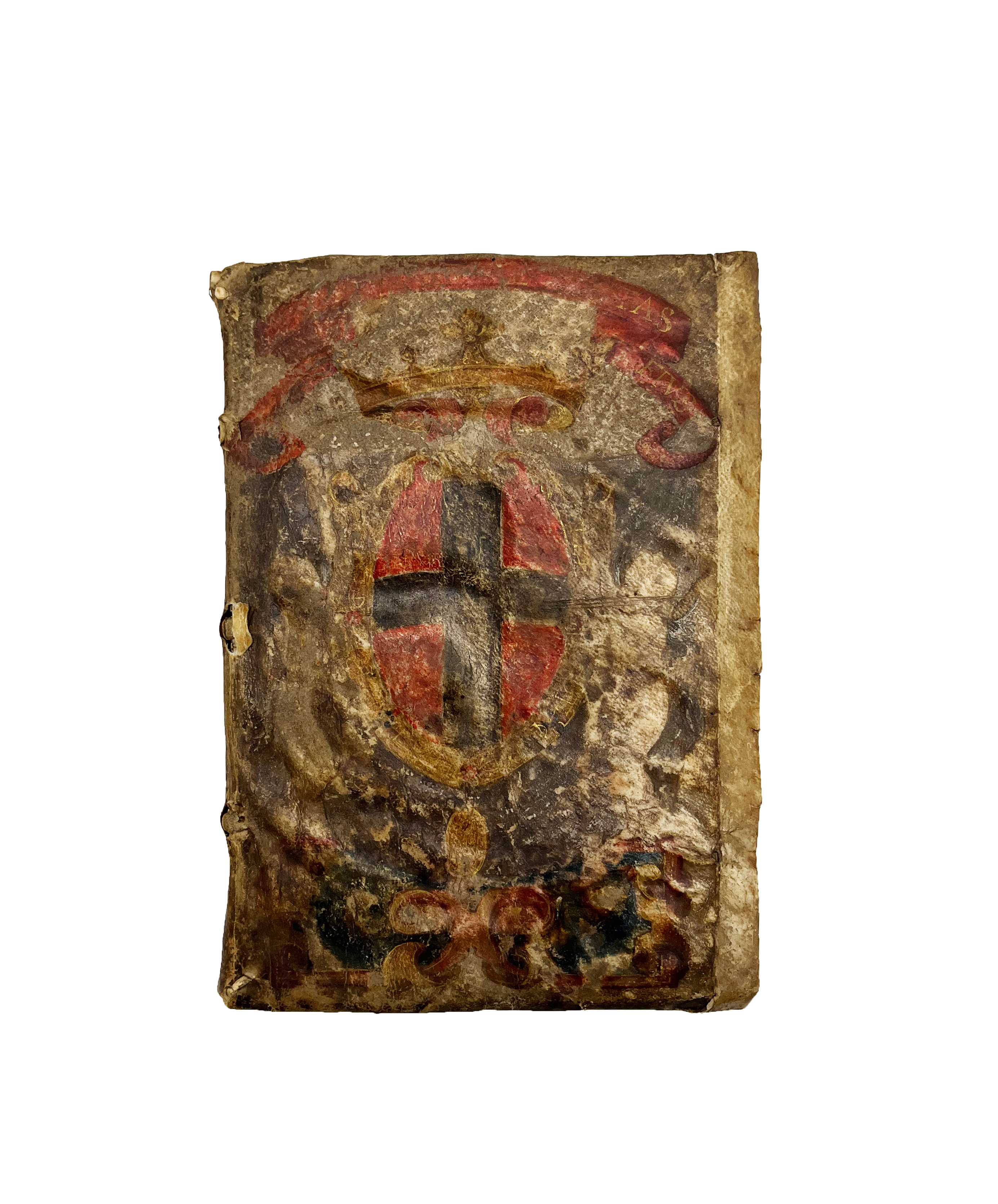 FIRST EDITION. 8vo. pp. [xx], 582, [iv]. Italic letter. Woodcut printer’s device on title, historiated woodcut initials, autograph “Carlo Richa 1718” on t-p. Light age yellowing, some minor mostly marginal spotting. A very good copy in contemporary limp vellum with the contemporary painted arms of Emanuele Filiberto, Duke of Savoy, upper cover with the arms of Savoy held aloft by putti, crown above and motto gilt on red banner, arms on lower cover with lions rampant below and female figures at sides, all edges richly gilt and gauffered, painting rubbed. In perspex fldg. case.