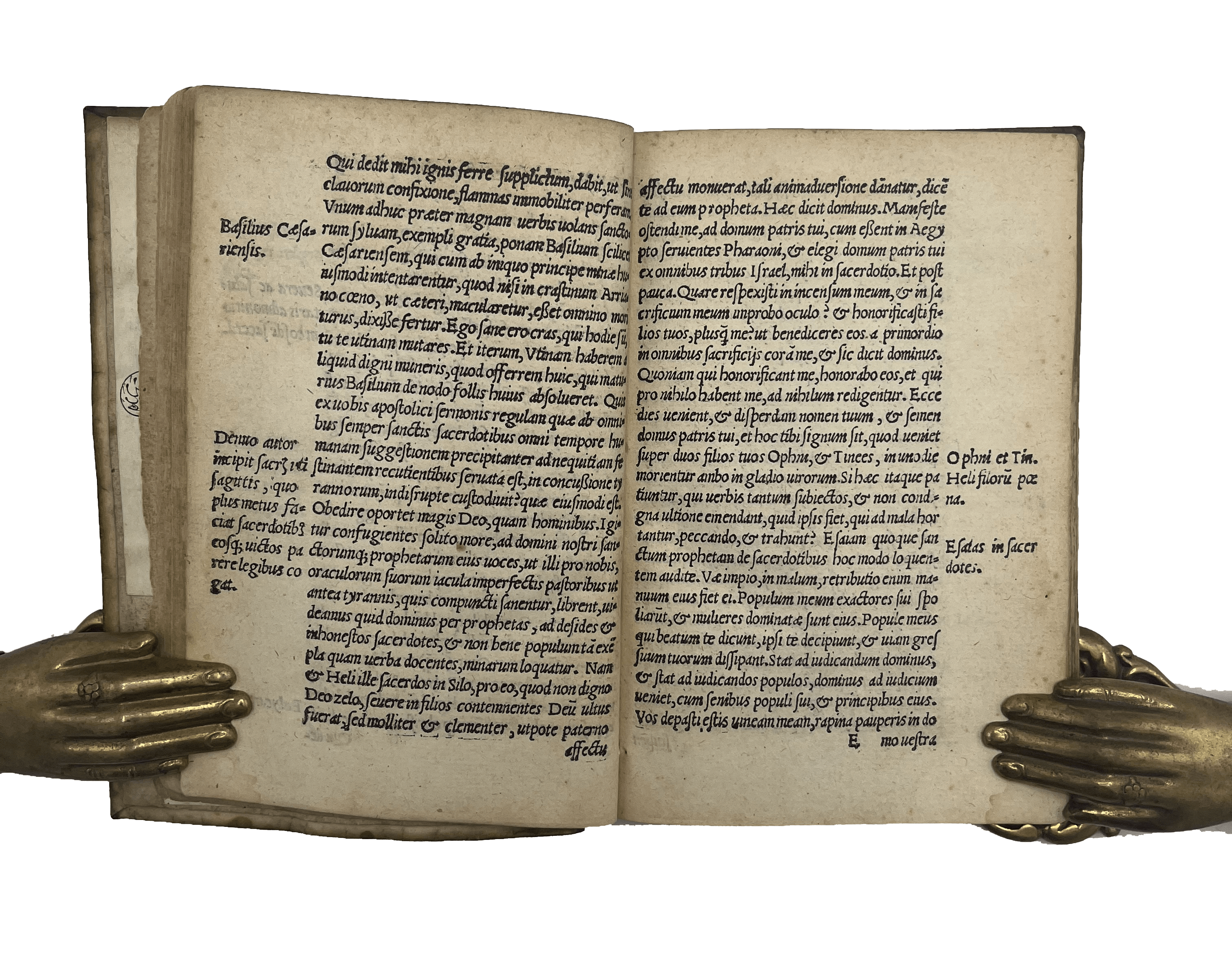 An interesting sammelband of two related critical works on ancient English history: the first edition of the first published work by Gildas, C6th monk and historian, being his chronicle of Britain from the Roman Conquest to his own time, and the first and only edition of John Twine’s (c.1501-81) commentary on ancient British history, from the arrival of Brutus after the Trojan War. Both these works expressed scepticism about the mythical origins of Britian claimed by medieval chroniclers. Gildas was edited by the Italian Tudor historian Polydore Vergil (d. 1555) and is, according to Denys Hay, ‘the first critical edition of an English historical text’ (Polydore Vergil (Oxford: 1952), p. 30). The dedication dated 1525 is to Cuthbert Tunstall (1474-1559), then Bishop of London and later Bishop of Durham, who supplied one of the source manuscripts. Vergil used this publication of Gildas ‘to prepare for the anti-Arthurian position he was to take up in the Anglica Historia,’ his chronicle of England published in 1534 (Hay, p. 30).