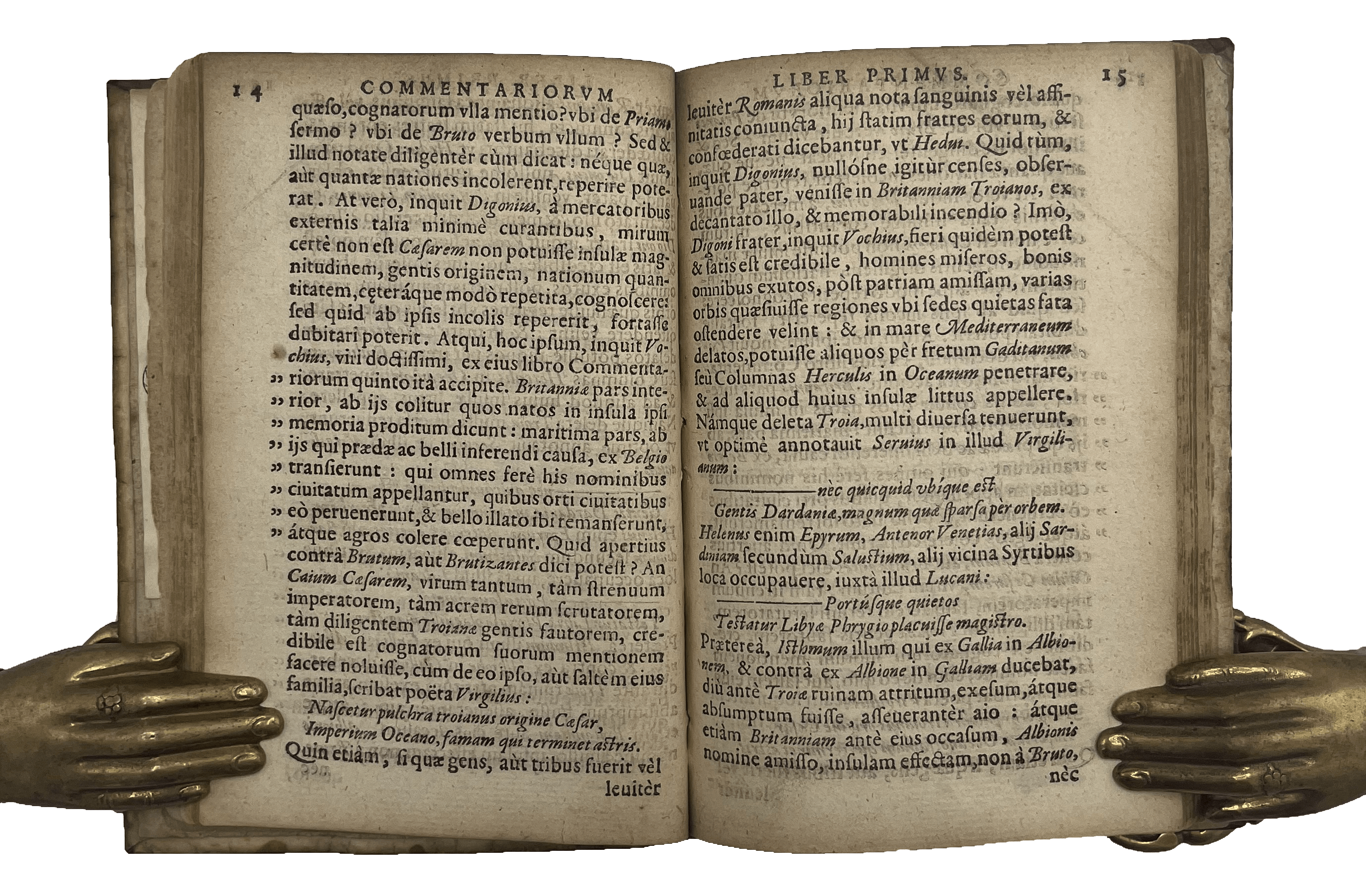 John Twine was a schoolmaster and MP who wrote this historical work for his son Thomas, then a student at Corpus Christi College, Oxford and later a physician, who published it and dedicated it to his friend and patron Thomas, Lord Buckhurst, later Thomas Sackville, 1st Earl of Dorset, and his son Robert Sackville, later 2nd Earl. Like Vergil, Twine debunks myths about the ancient origins of Britain, including those presented by poets such as Horace and Virgil and by medieval chroniclers, especially Geoffrey of Monmouth. He refers frequently – and anecdotally, as they were never published – to the sceptical opinions of Nicholas Wotton (c.1497-1567), who rejected Monmouth, as well as to humanist commentators like Juan Luis Vives (1493-1540), Pomponius Laetus (1428-98) and Polydore Vergil himself. The second part, a rambling discussion of English place names, geography, botany, etc., contains an examination of the fictional King Arthur and Merlin, with a discussion of the real historical genealogies of the English royal and noble houses.