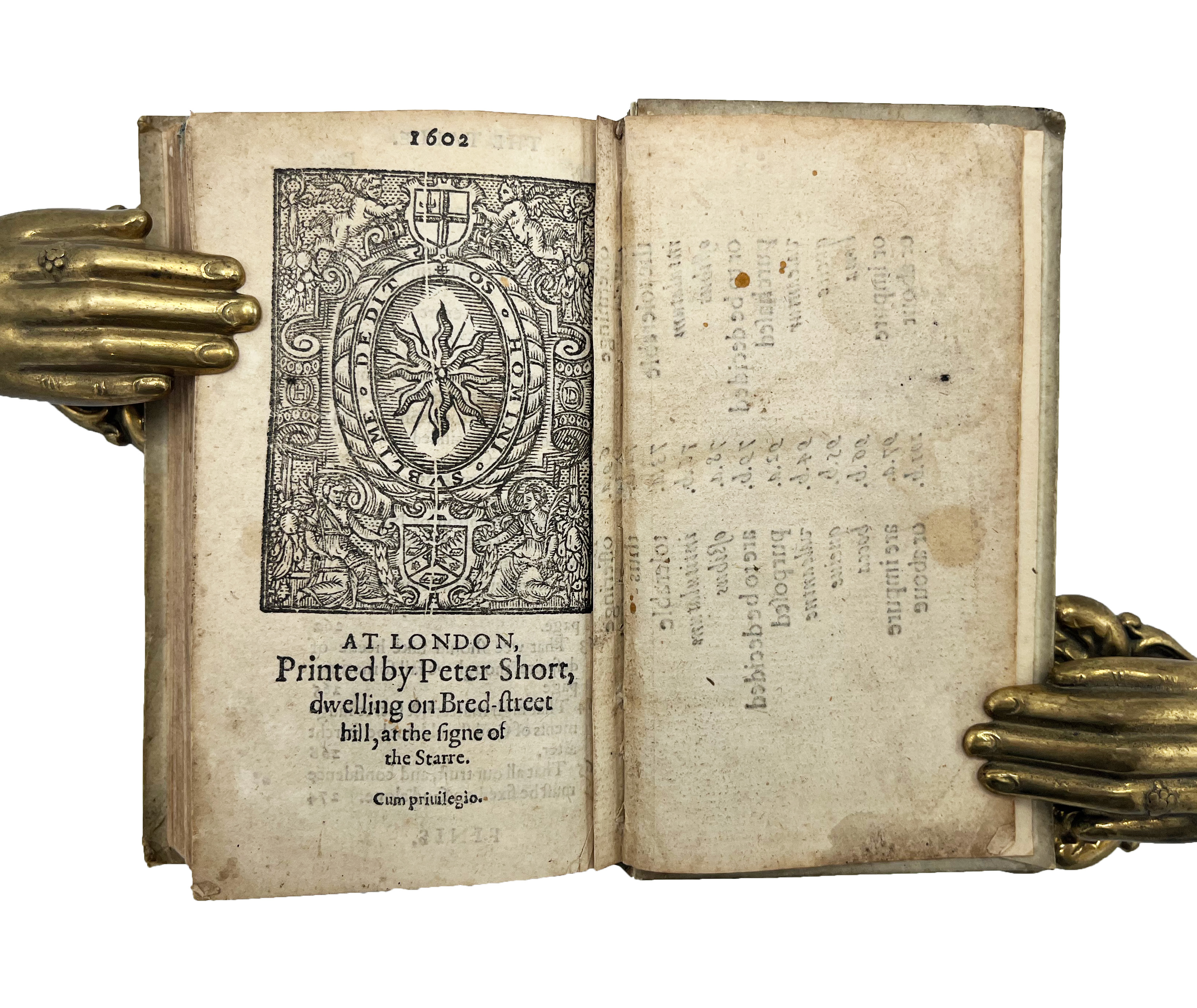 12mo. pp. (xlviii) 277 (xi) [i]. Roman letter. Two woodcuts depicting King David to first verso and B12v, printer’s device to last verso. Woodcut initials, woodcut and typographical headpieces. Small rust stain to t-p, light intermittent inkstain to upper outer corners. A good copy in C18 vellum. Fox Pointe bookplate.
