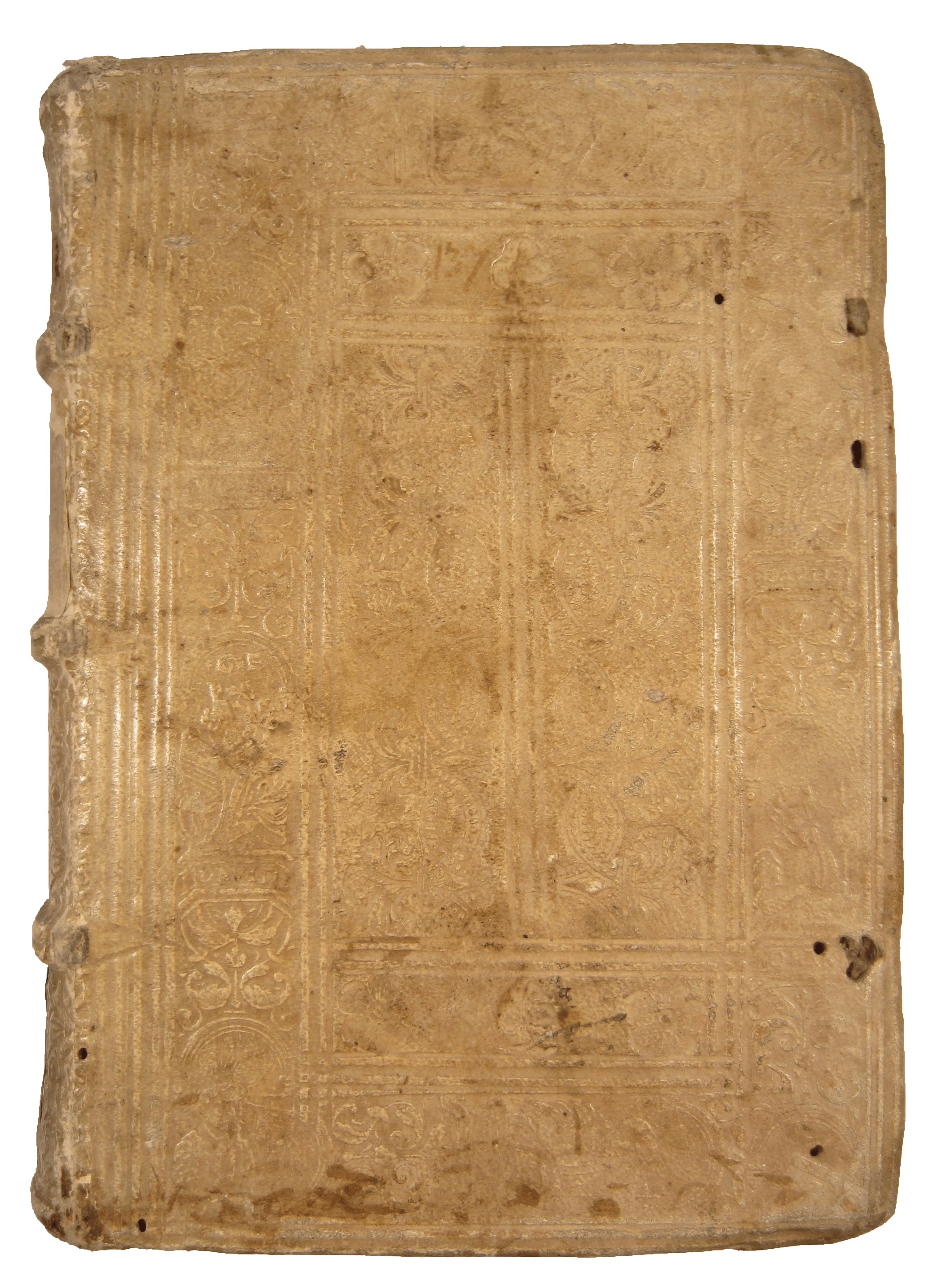 8vo, ff. [4], 432. Roman letter, little Italic and Greek; printer’s device on title; minor wormtrail at blank foot of first gathering, light small rustspots to a few leaves, ink smear to lower corner of ff. 243v-244r. A very good copy in contemporary Leipzig alum-tawed pigskin (Einbanddatenbank, w000428 ), blind-tooled with triple-fillet border, external roll of Biblical figures (Moses, David, John the Baptist and Christ bearing the cross) amid floral decoration and central roll of palmette with three flowers on top and bottom; contemporary title inked on spine alongside early ms shelfmark and title on paper labels slightly rubbed, a few small wormholes, corners lightly chipped; contemporary inscription ‘Sum ex libris Claudij Simonet’ on front endpaper recto, ex libris of an Augustinian convent in early seventeenth-century hand on title and an earlier one trimmed at foot; blue ink stamp of ‘Hermann Funke’ on verso of title.