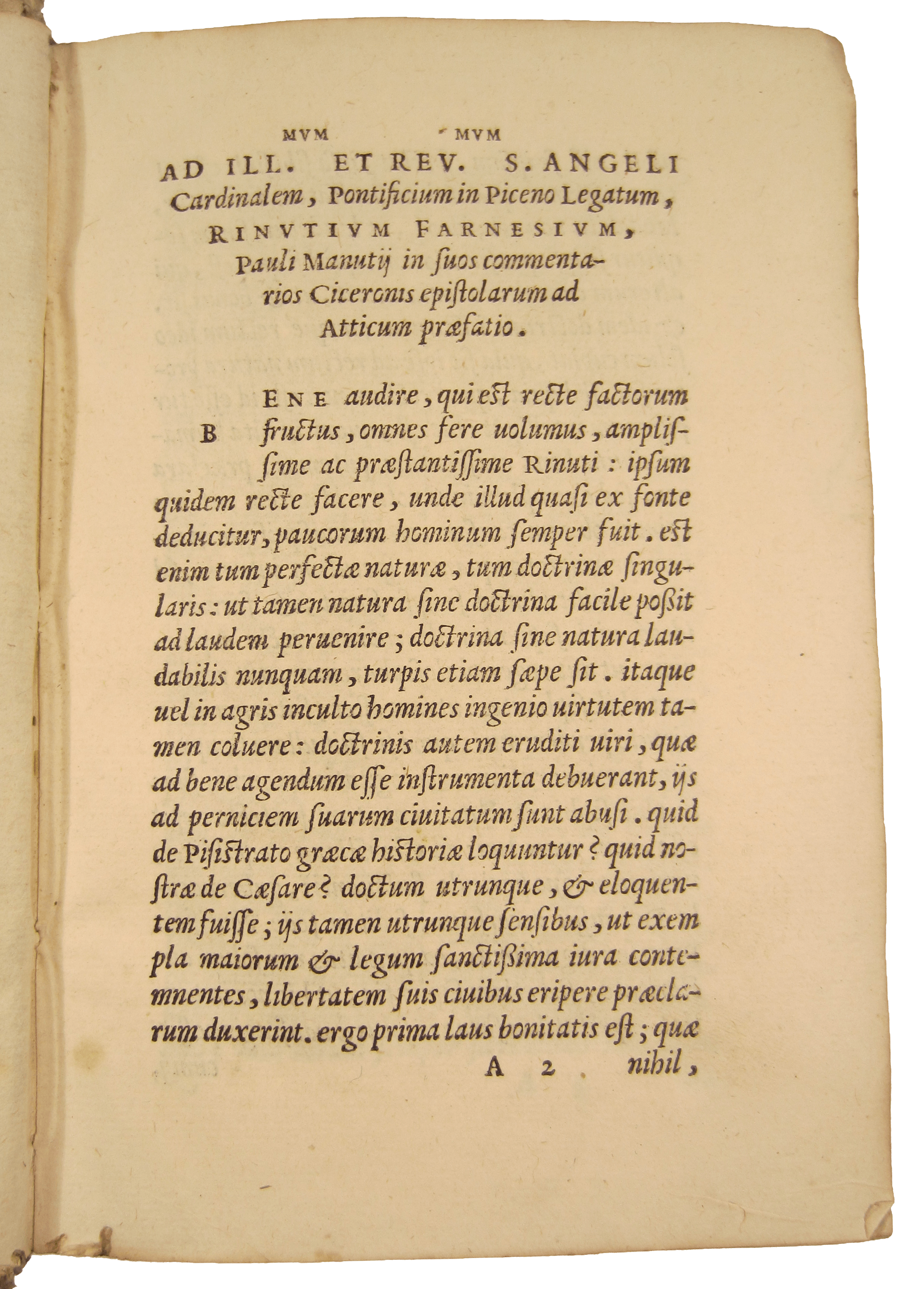 MANUZIO, Paolo In epistolas Ciceronis ad Atticum... commentarius
