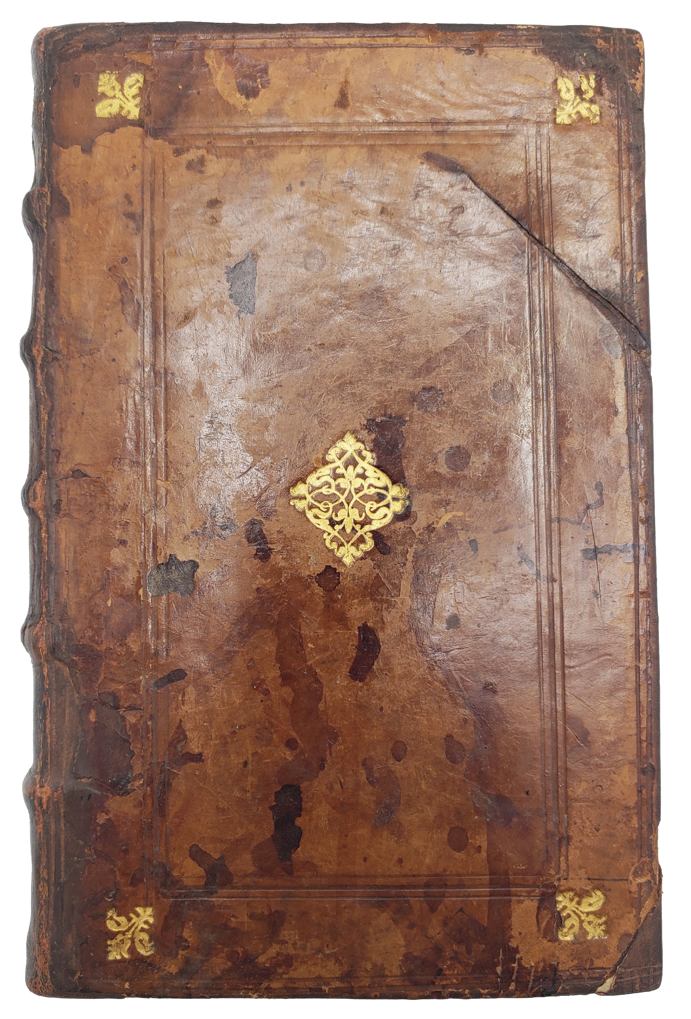 8vo. ll. 332. Roman letter. Woodcut printer’s device to t-p. Contemp. acquisition note to ffep, ms. author’s name to upper and outer edges. Contemp. French panelled calf, gilt, floriated cornerpieces and central arabesque, fillet borders in blind, spine gilt in panels with single quatrefoil tool, rubbed and stained, slight loss at edges, spine partly restored. Margins very lightly foxed, a very good, clean copy.