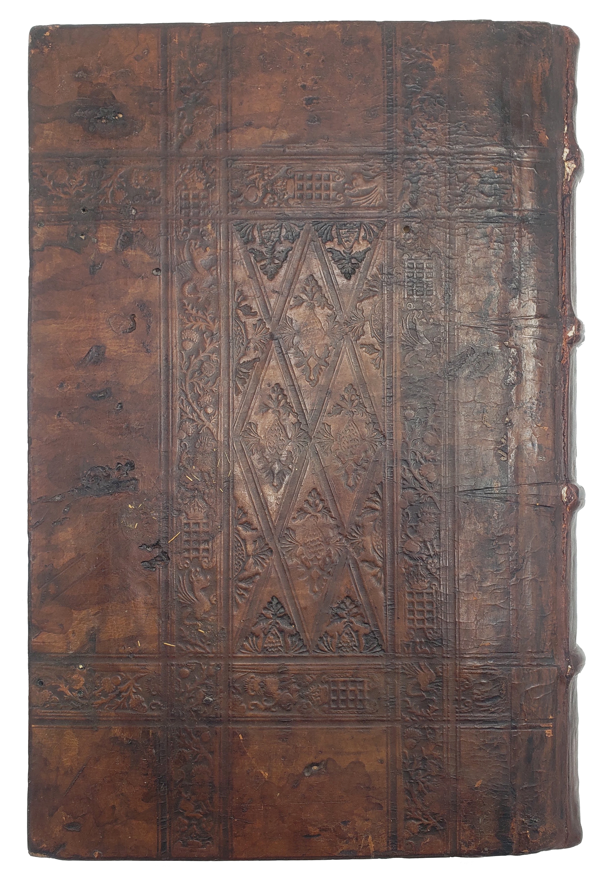 FIRST EDITION thus. Folio. pp. (xxxvi) 566 (ii). Roman letter. T-p with woodcut border by Johann Faber, next also with woodcut border and initial with putti, the latter by Holbein, seventeen further woodcut initials by Holbein, woodcut head-pieces, final verso with woodcut printer’s device. Contemp. English (London) blindstamped calf, central panel of diapered fillets and floriated diamond full- and half-stamps (Oldham B. (3)), within border of portcullis, wyvern, lion and acorn roll (Oldham AN. g (1)), rebacked, remains of clasps, the odd mark or wormhole with slight loss, later ms. shelfmark to boards, contemp. ms. edge title. Occasional contemp. ms. annotations and underlining, page ref. to final verso. T-p repaired along gutter, two closed tears, slight restorations at lower outer corner and edge, *4 with closed tear to outer margin. A few ll. with slight browning probably from wet sizing, occasional light foxing to margins, a couple of marginal wormholes to last few quires, the odd light spot or smudge, a very good, clean, wide margined copy.