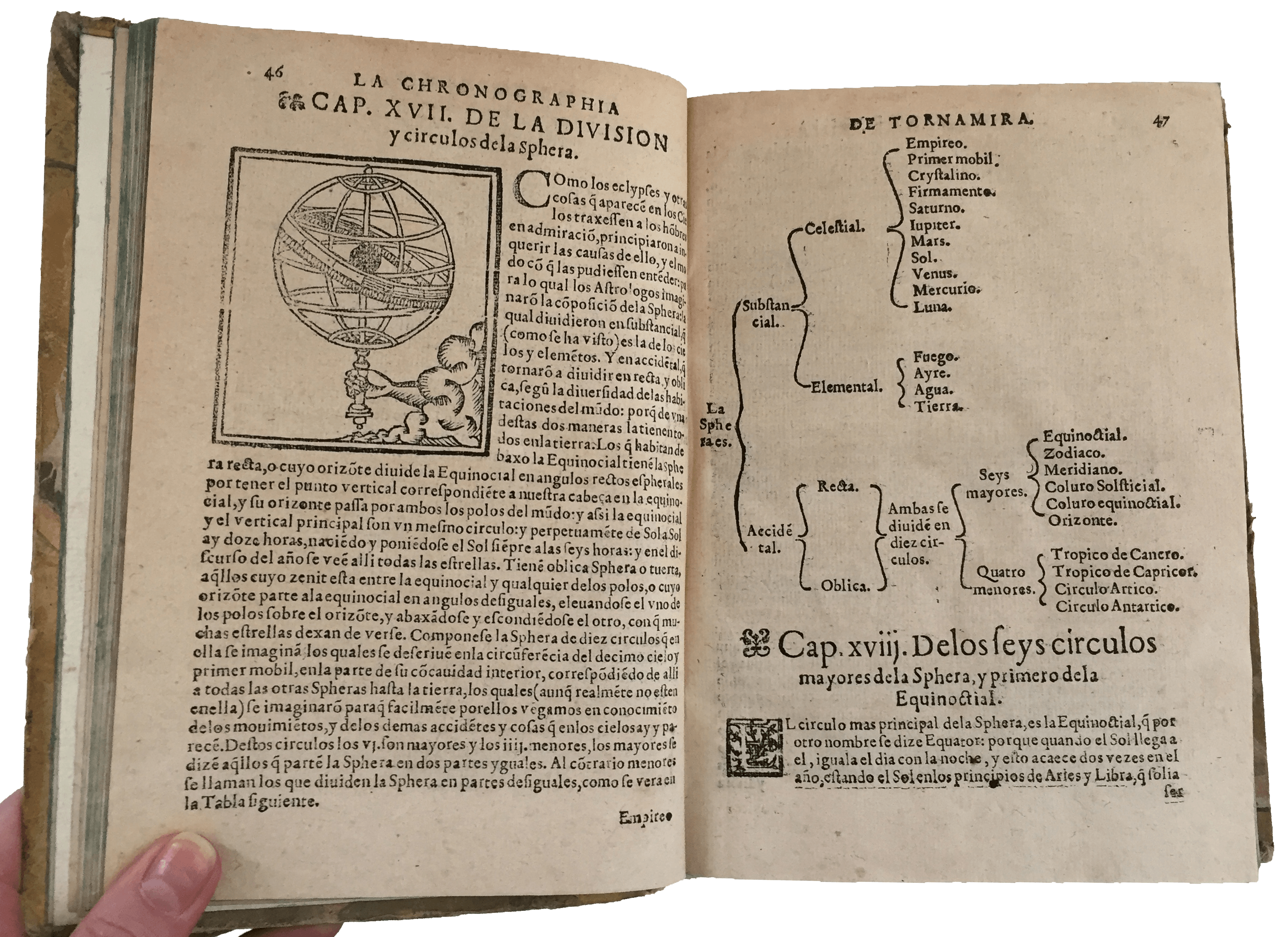 A fervent supporter of Ptolemaic vision of the universe against the heliocentric theory, Tornamira comes up with convoluted explanations to bridge the gap between mathematical calculation and the traditional model of planetary movement. A most interesting part is devoted to the solar calendar and the recent reform introduced in 1582 by Pope Gregory XIII, discussing the exact days of the year in which Lent, Corpus Domini and Easter should be celebrated. Tornamira expanded on this topic in his subsequent work, the Spanish translation of the new Gregorian calendar (1591).